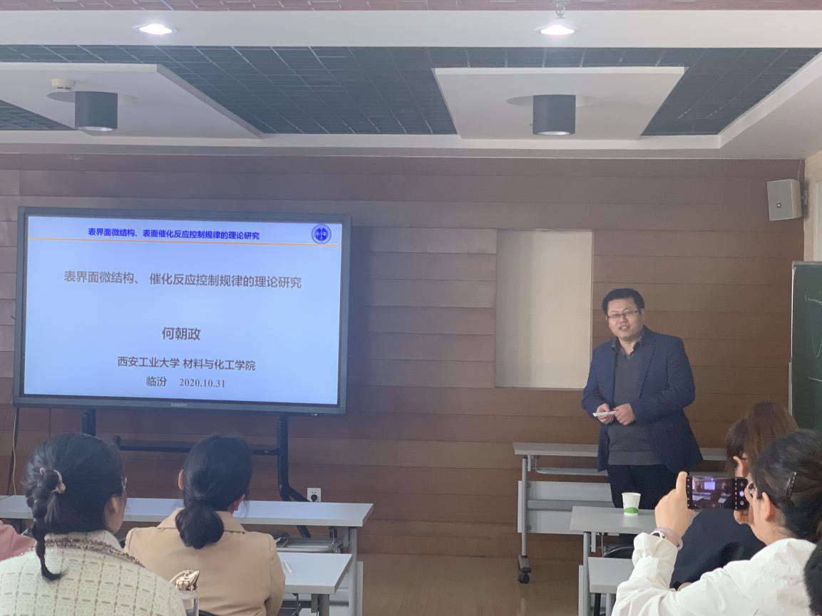 10月31日上午,西安工业大学何朝政教授应邀来我们作了题为《表界面微结构、表面催化反应控制规律的理论研究》的报告。报告会在综合实验楼725室举行,我们相关研究领域的教师及研究生聆听了此次报告。报告会由院长贾建峰主持。