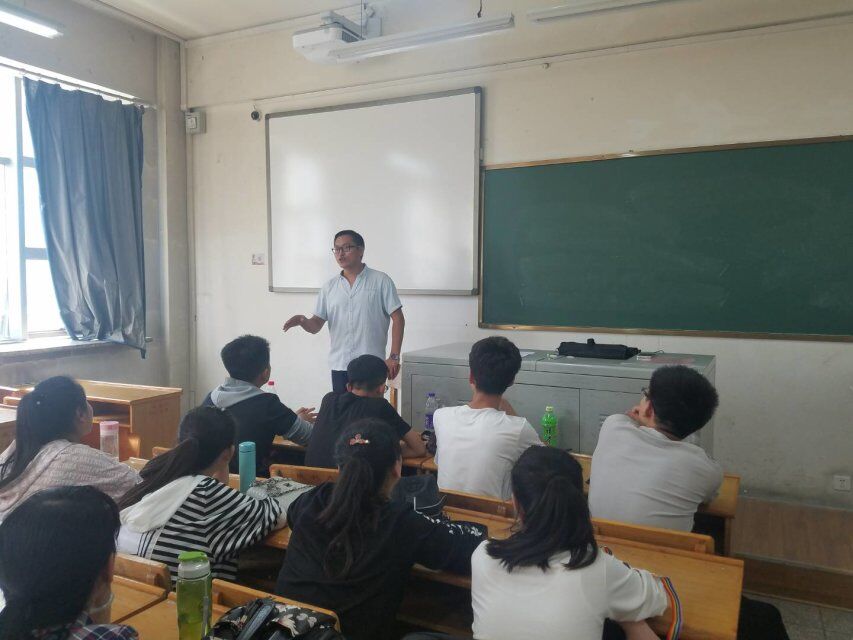 1704班辅导员吴昊老师从个人的大学经历谈起,为同学们讲述了他的大学生活,告诉大家无论怎么样都要好好学习,适当的加入一些学生组织可以锻炼自己的能力,要学会大胆的表达自己,但最重要的还是学习,要有紧迫感,无论做什么事都要坚持,选择了的不后悔,付出努力就能收获成果。