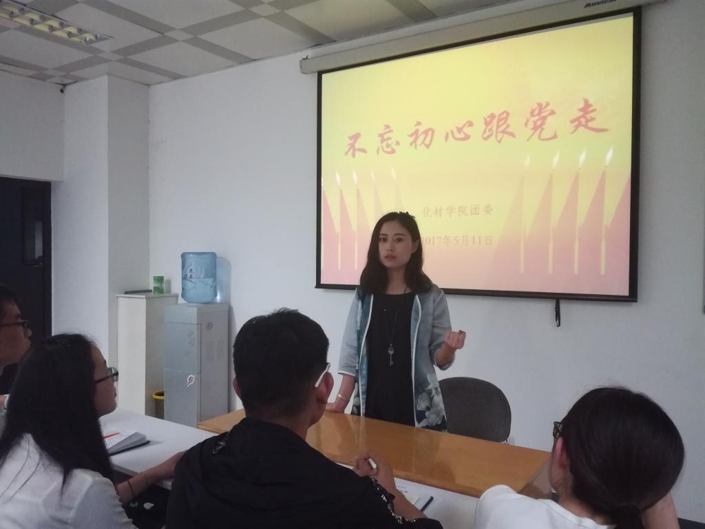 在会议中,樊鑫老师首先为大家讲解了习近平总书记“5.3”重要讲话精神,强调了作为一名共青团员,要坚持共青团发展前进的基本经验,大力弘扬听党的话、永远跟党走的光荣传统。樊鑫老师在讲解过程中围绕学院的中心工作,并将院团委为响应党的号召,在青年大学生政治思想教育等方面即将开展的工作做了部署安排。接着由学生会的六名同学以“不忘初心跟党走”为主题进行了演讲。