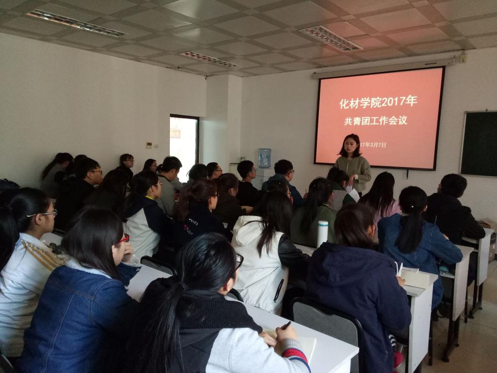 为了响应两会的召开,贯彻落实省共青团和校团委的工作要求,太阳集团tyc151于3月7日中午在化学楼二层报告厅召开了2017年共青团工作会议。参加本次会议的有院团委副书记樊鑫老师、院团委学生会主要学生干部以及各班的团支部书记。会议由樊鑫老师主持。