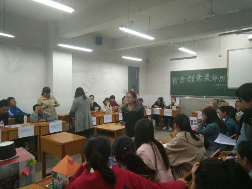 活动当晚,由主持人介绍活动规则后,活动正式开始。大一、大二学生依次将手工相册进行展示,并简述宿舍温馨事、想对舍友说的话、照片的创意等。全部展示结束后,由大一新生为大二学生投票,大二学生为大一新生投票。最后,由院学生会进行统计,选出各个年级的前六名,设立一等奖一个,二等奖二个,三等奖三个。