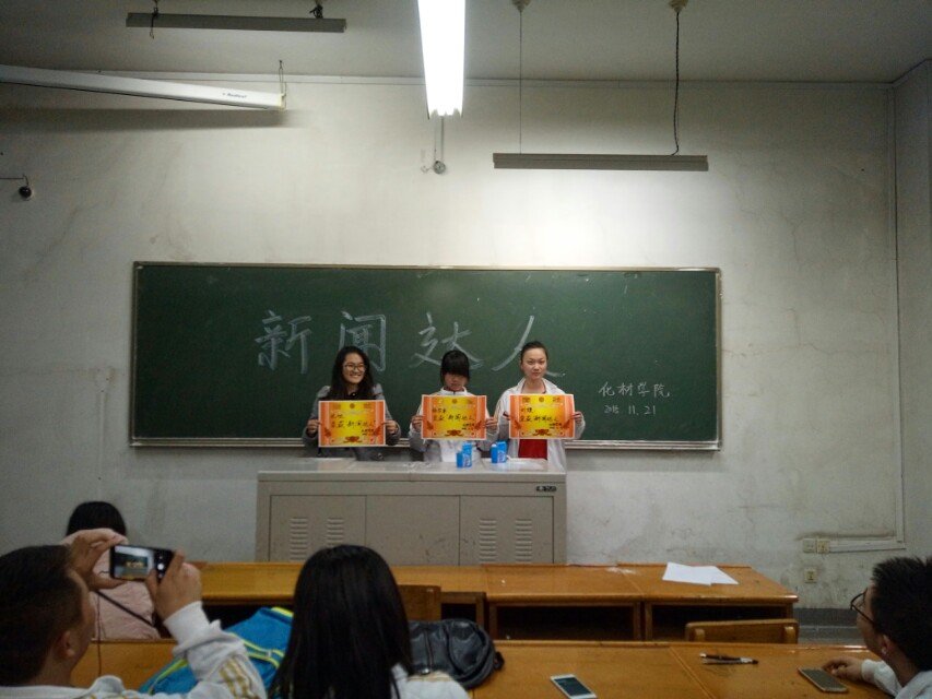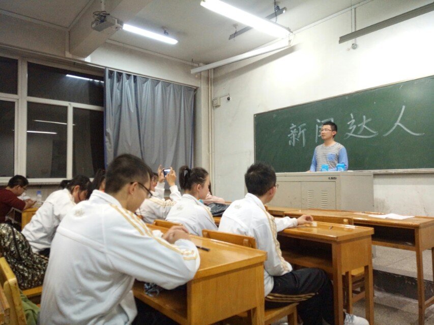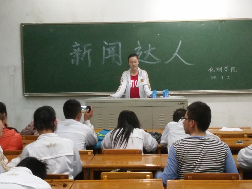 根据三个时事热点——“研究生比本科生好就业”、“二孩政策的利与弊”、“新闻标题和内容不匹配”将参赛者分成三组,然后每组代表对各自所选热点进行详细阐述,大多数人认为研究生比本科生好就业的原因是——研究生知识面广、能力强;生二孩可以缓解中国人口老龄化趋势;作为新闻人应该实事求是的报道新闻事实,而不应该为了求点击量而扭曲事实、文不对题。活动最终选出三位最优“新闻达人”,并为其颁发奖状。