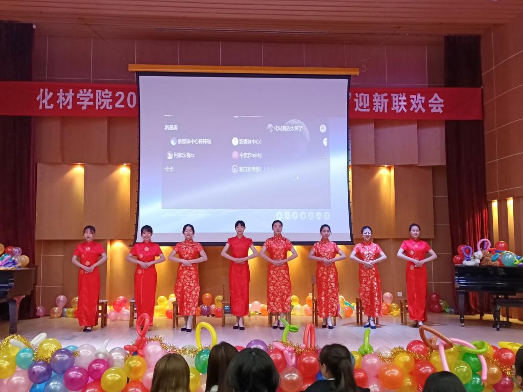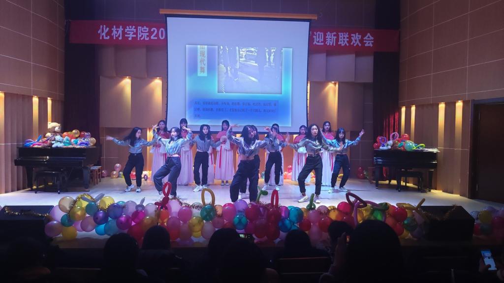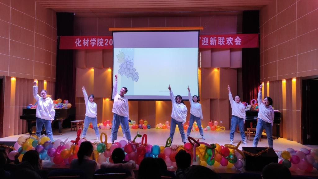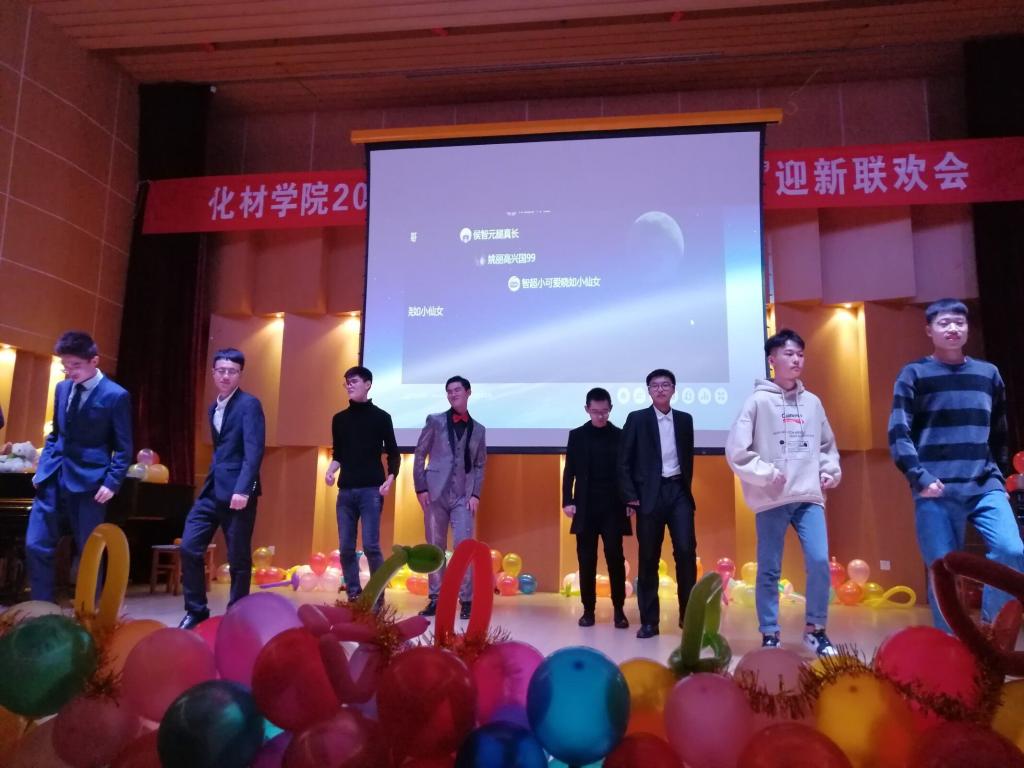 充满回忆、温馨又富有创意的暖场视频拉开了迎新联欢会的序幕。化学1802班合唱《不忘初心》振奋人心,化学1801班合唱《行知路上》感情真挚。团委学生会办公室《快乐沙雕舞》、青协《快乐对对碰》热情奔放,新媒体中心《惊鸿兔子舞》、宣传部舞蹈串烧《舞时空》舞出了同学们的青春活力,素拓部的《靓仔之舞》热情似火,王宇鹏的独唱《清明上河图》令人陶醉,体育部舞蹈《律动》舞动人生,心协的舞蹈《寄明月》和新媒体中心的歌舞《青春正当时》照亮梦想。在拉歌环节中,现场互动效果良好,将晚会气氛推向高潮,间以有趣的抽奖环节更是让全场同学参与到晚会中来。之后的礼仪展示别具一格,学习部歌舞《有点甜》、组织部歌舞串烧《幸运的爱》浪漫轻松,素拓部的音乐剧《灰姑娘》让我们重温童话故事,科创部小品《想蹦就蹦》演绎喜悦,文艺部舞蹈《最靓的仔》、生活部歌舞《发射可爱》舞动青春,最后T台秀压轴登场,同学们用自信的脚步展示出化材人积极向上的精神风貌。