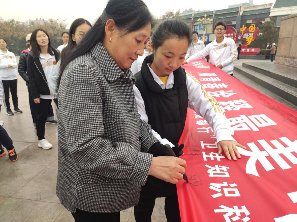 当天上午,青马班部分学员开展了化学知识宣讲。学员们组队到达鼓楼广场后,向市民们分发调查问卷,并热情积极地向市民宣讲生活中的化学小知识,邀请市民在活动横幅上签下了自己的名字。