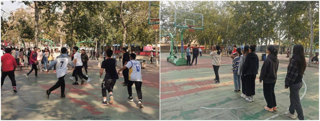 篮球比赛分为男子篮球赛和女子定点投篮。比赛中,队员们分秒必争、努力拼搏、全力以赴,赢得了在场观众的阵阵掌声。