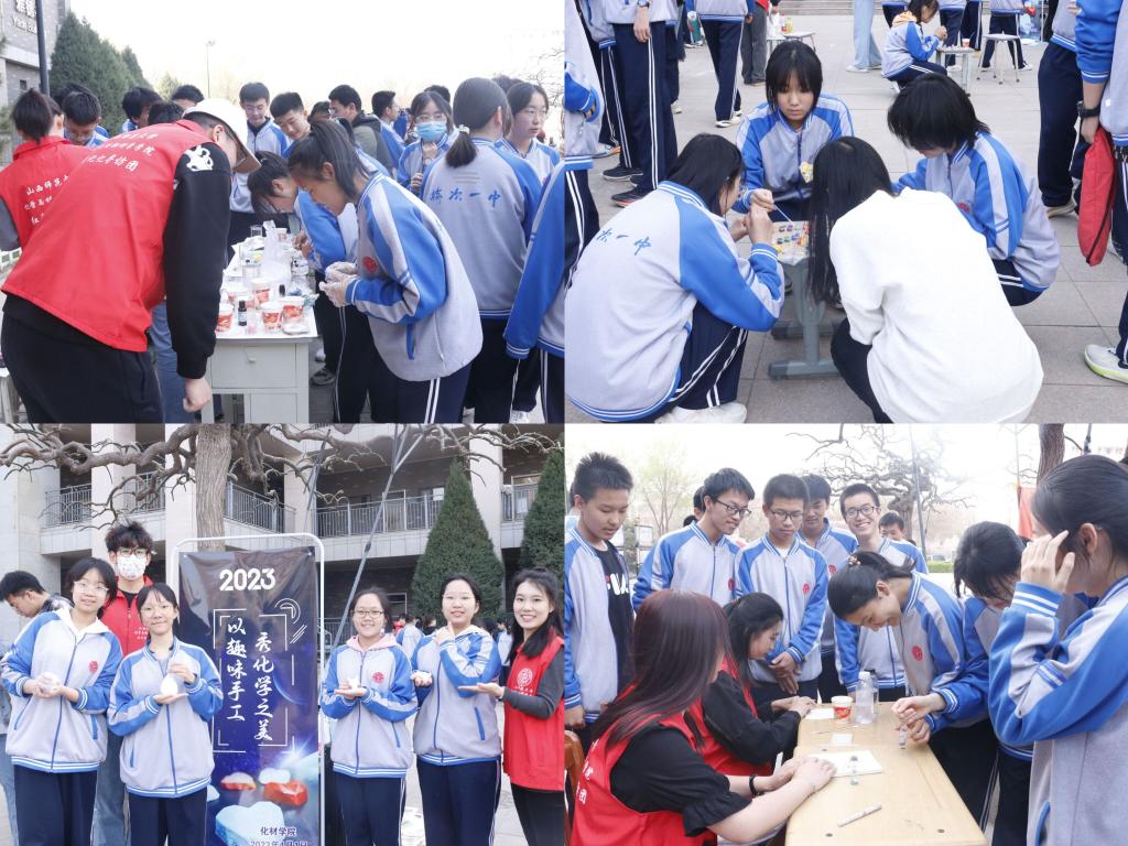 为发挥化学学科优势,引导广大学生探索蕴含于化学世界中的科学精神,彰显化学魅力,科普化学知识,展示奇妙化学变化,激发榆次一中师生对化学的学习兴趣,培养对化学深入探索的热情,4月1日下午,我们第五届“让化学走进校园”活动节走进榆次一中,开展“以趣味手工 秀化学之美”创意手工活动。